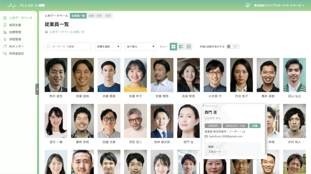 2025年6月、まずはじめに「人材データベース機能」を先行リリースしました。人材データベース機能は、自社の従業員情報を集約し可視化したデータ基盤です。人材情報の共有、人材の最適配置、人材管理業務の効率化に役立ちます。